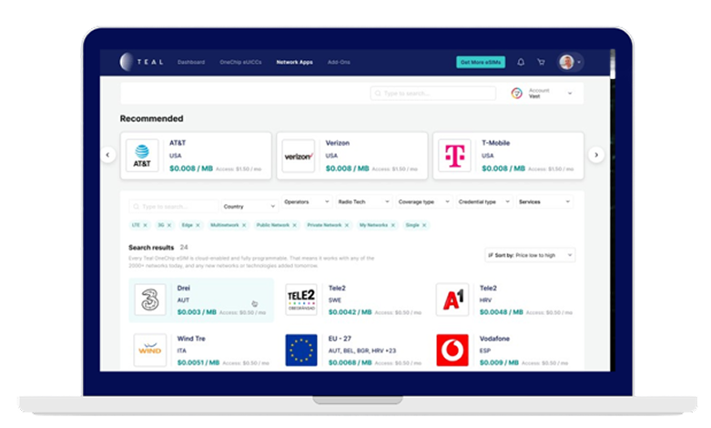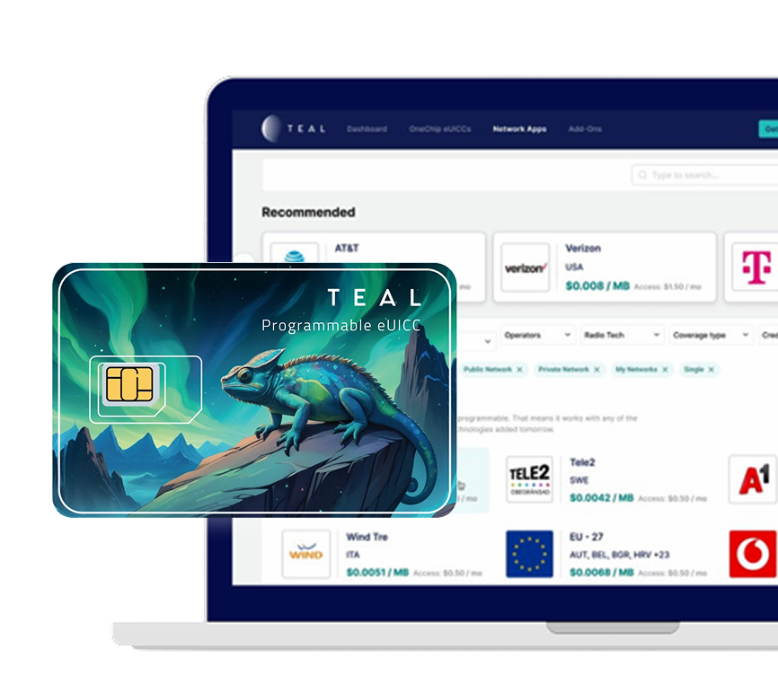 TEAL’s Standard or Embedded eSIM is compatible with any device and connectivity is managed via TEAL’s Aurora Connectivity Management Platform.